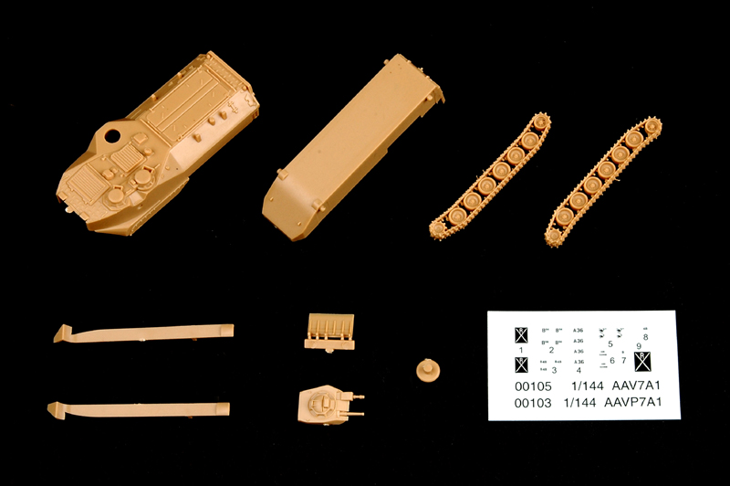 Item No 00103 Item Name USMC AMPHIBIOUS ARMOR AAVP7A1 Bar Code 9580208001036 Scale 1/144 Item Type Static Kit Model Brief Length:56mm Width:24mm Height:22.4mm Total Parts 10pcs Metal Parts n/a Photo Etched Parts n/a Film Parts n/a Resin Parts n/a Total Sprues n/a Released Date 2008 More Features n/a