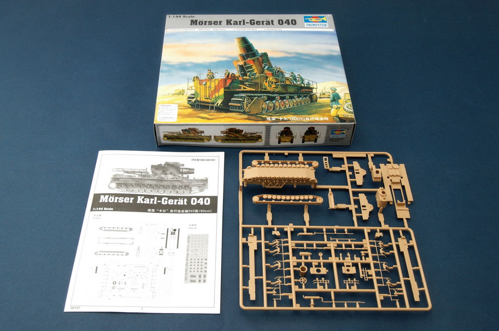 Item No 00101 Item Name Morser Karl-Gerat 040/041 (Initial Version) Bar Code 6922803601014 Scale 1/144 Item Type Static Warship Model Brief Length: 80.5 mm Width: 30.5mm Height:33.5mm Total Parts 32pcs Photo Etched Parts n/a Total Sprues 1PCS Paint Schemes Markings for Nr.III”O(jiān)rdin”040 and Nr. V “Loki”040 in Three color camouflage. Released Date n/a More Features n/a