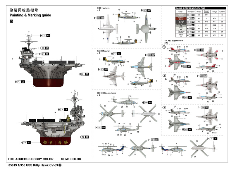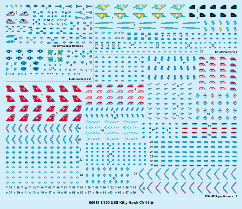 - Detailed Hull is a one piece part - Detailed flight deck and hangar deck -Extensive photo-etched details included -Aircraft Wing includes: E2C, C-2, F-18C,EA-6B,SH-60,HH-60H -Complete ship and aircraft decal sets |