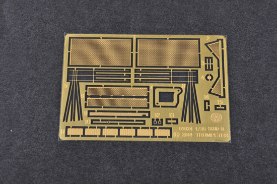 Detailed multi-directional slide-molded cab. > The windshield and side windows are made of clear prts. > individual tracks links included > Photo-etched parts included |
