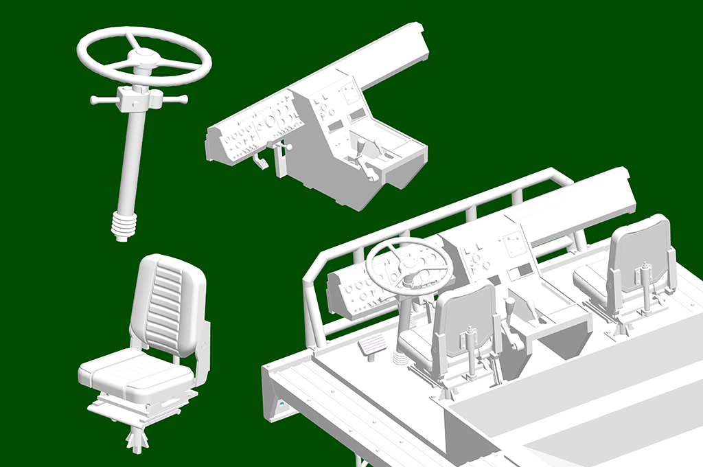 Detailed multi-directional slide-molded cab. > Full drive train assembly complete with engine transmission, differential housing and suspension units. > The main tires are hollow rubber with very good tread pattern > The windshield and side win |