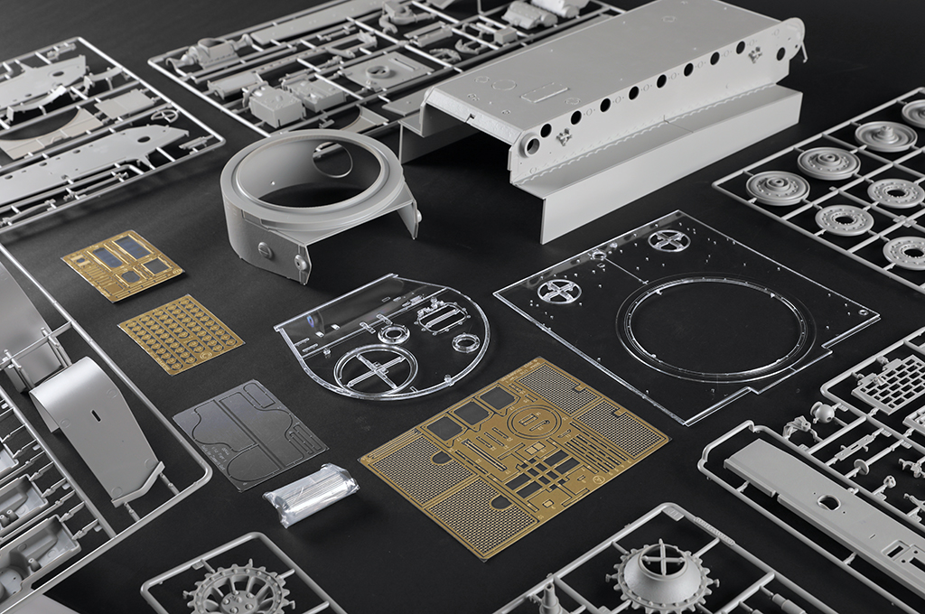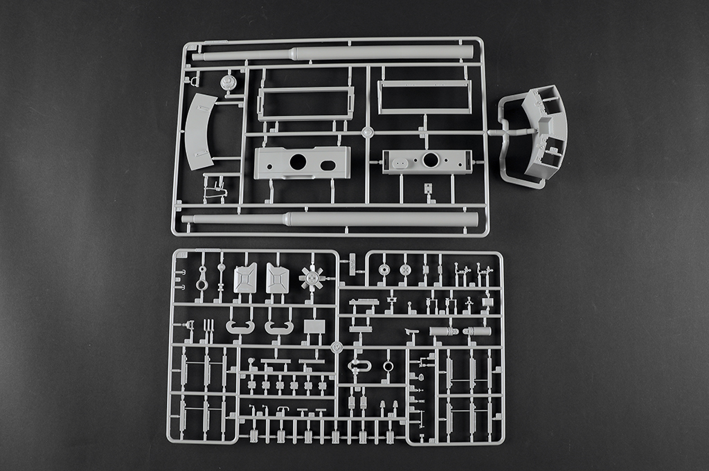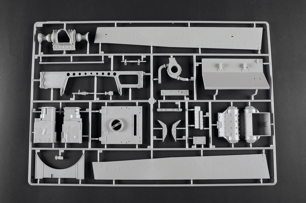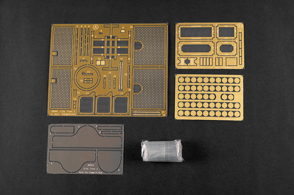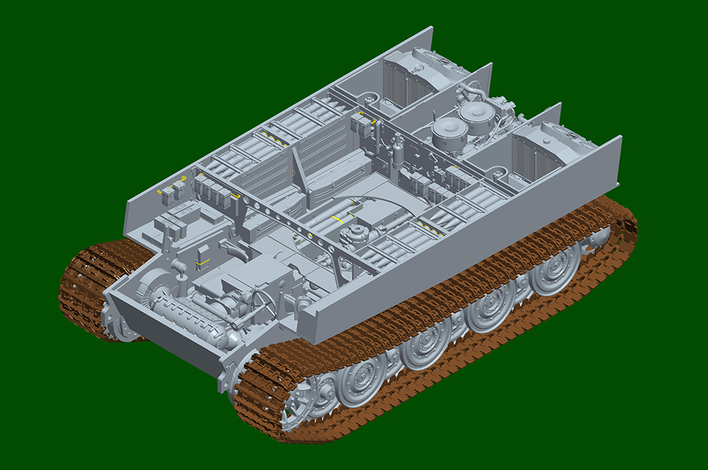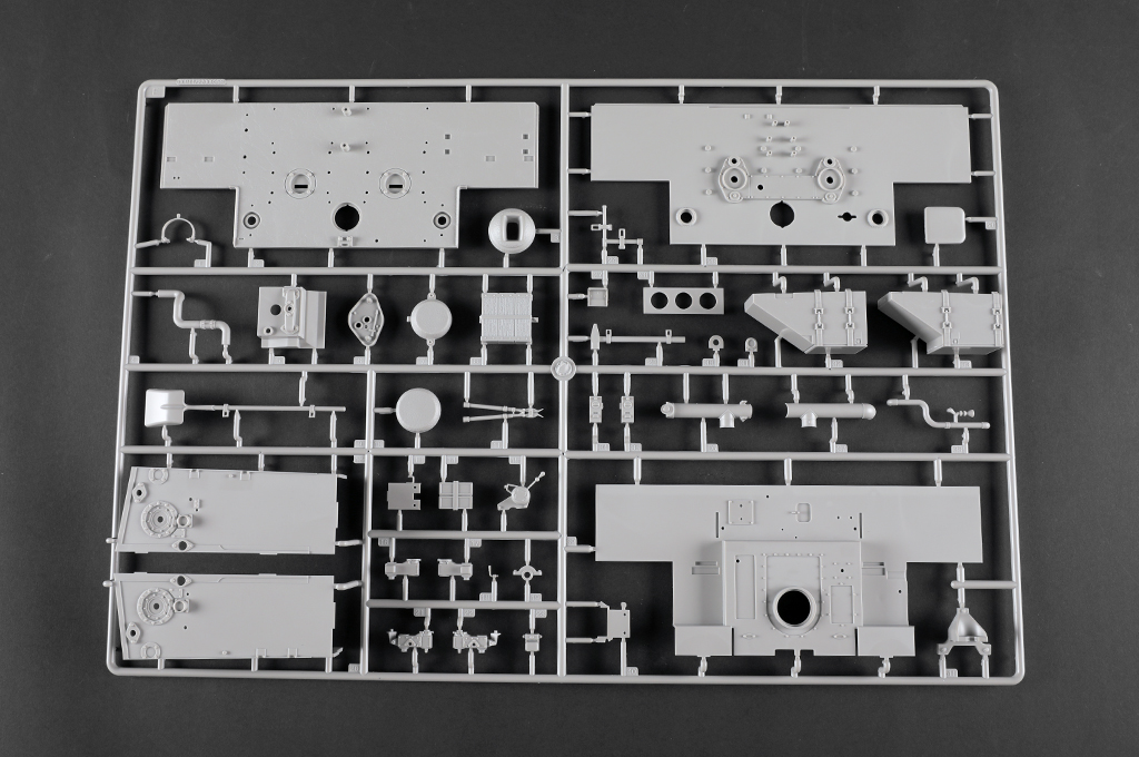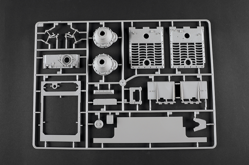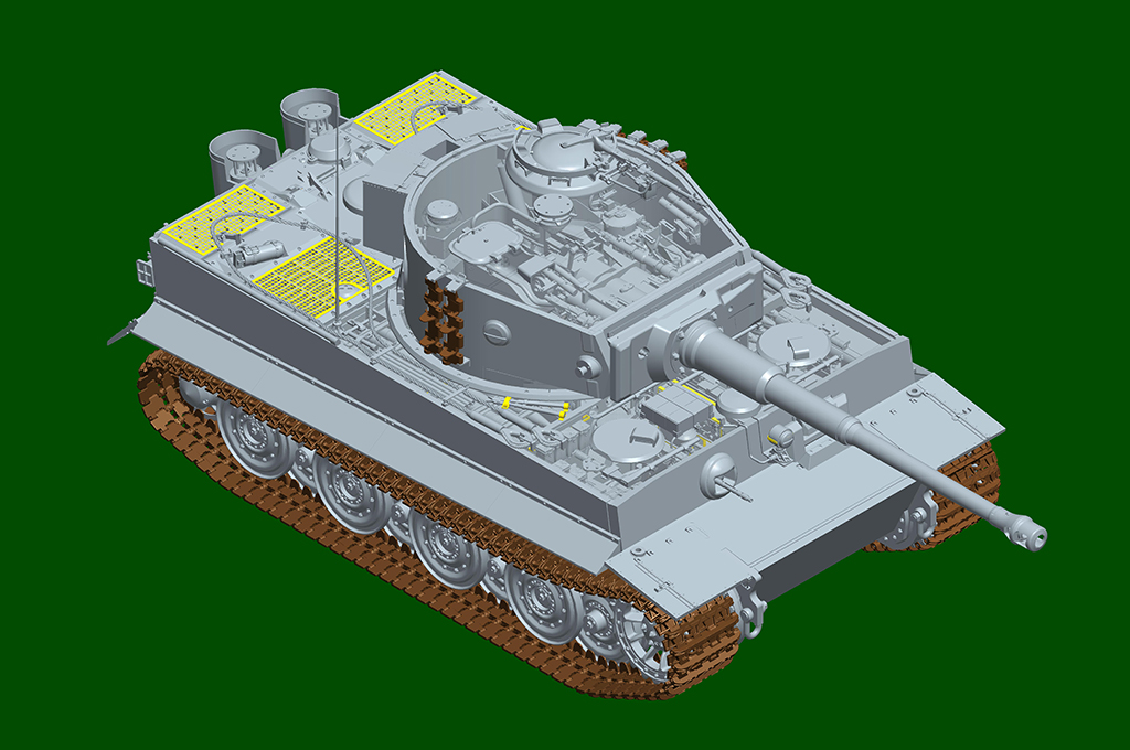 The kit consists of over 1500 parts >the kit w/refined detail >multi-slide moulded lower hull and upper hull >Full interior details >individual tracks links >Photo-etched parts included >includes tools for zimmerit coat |