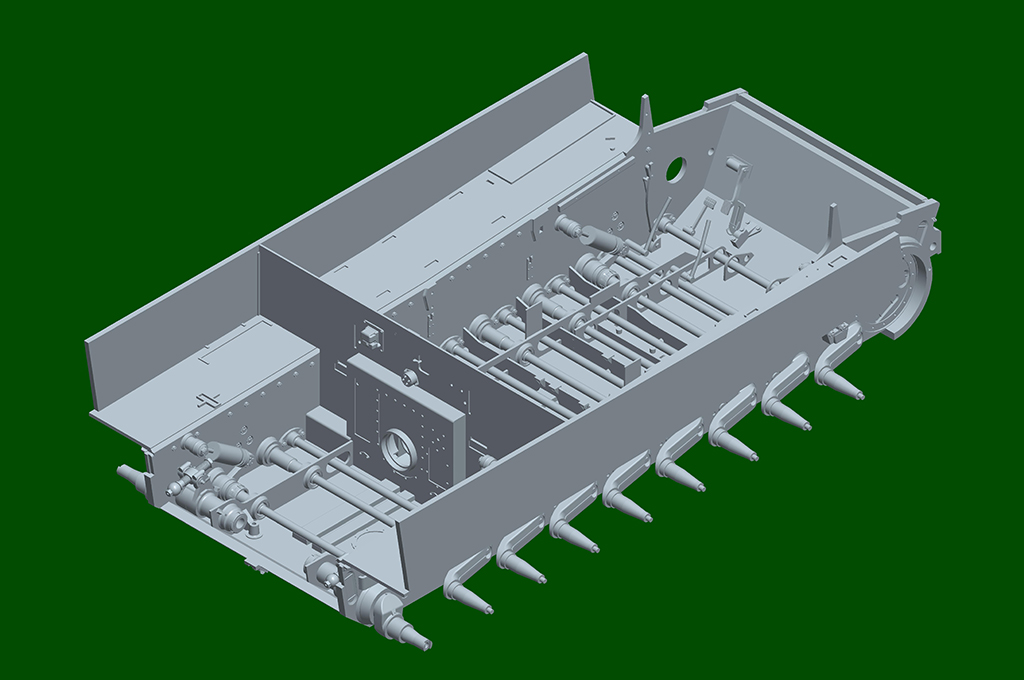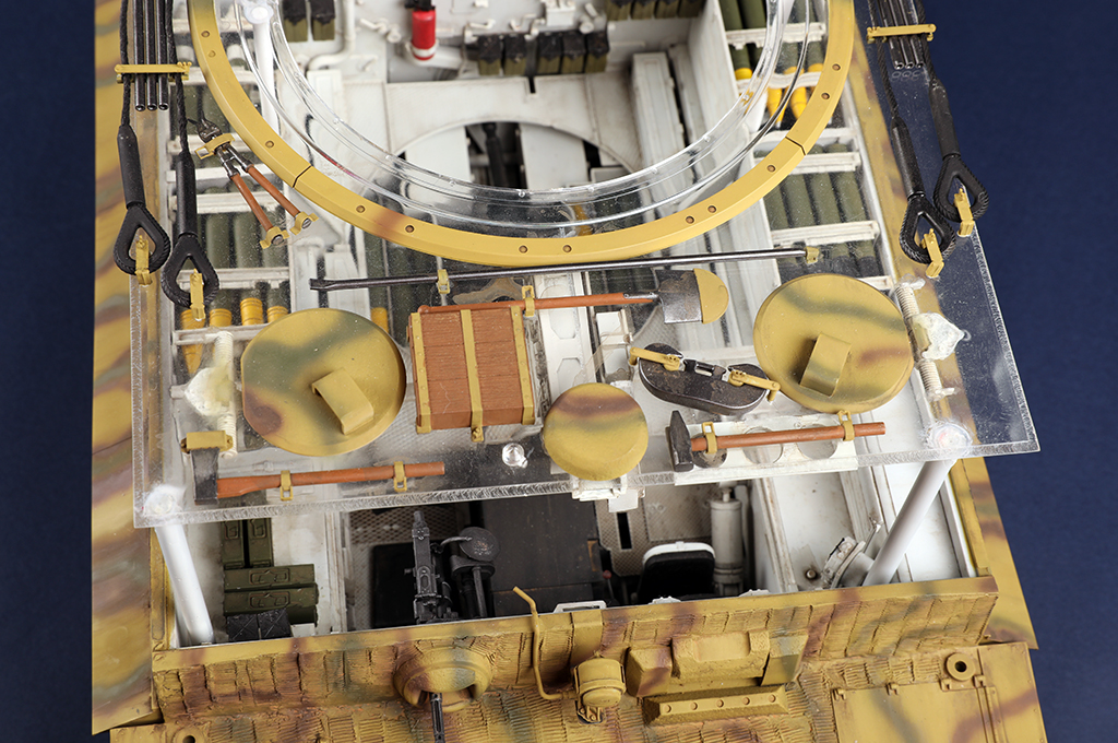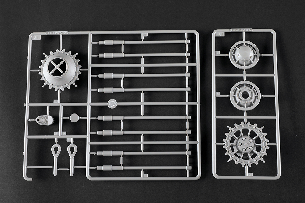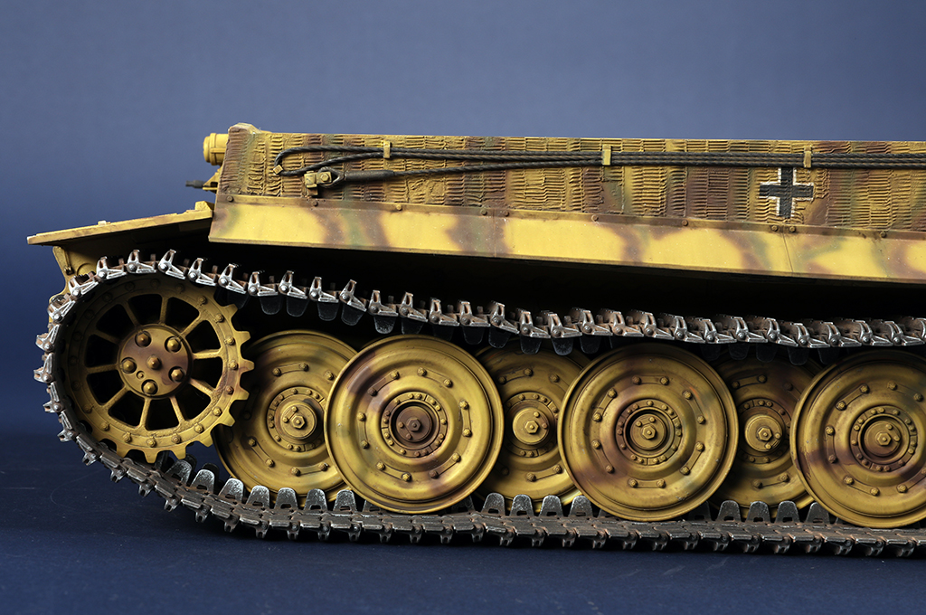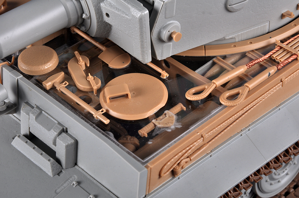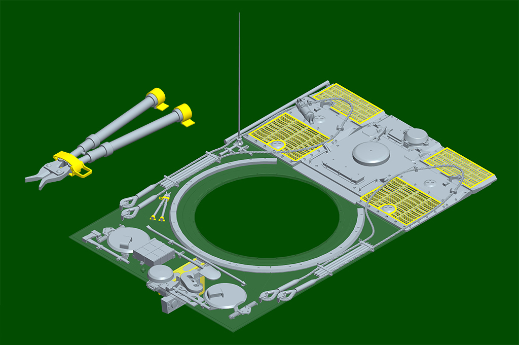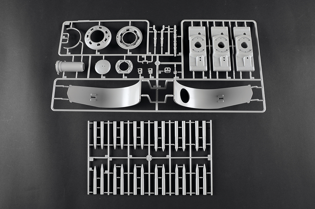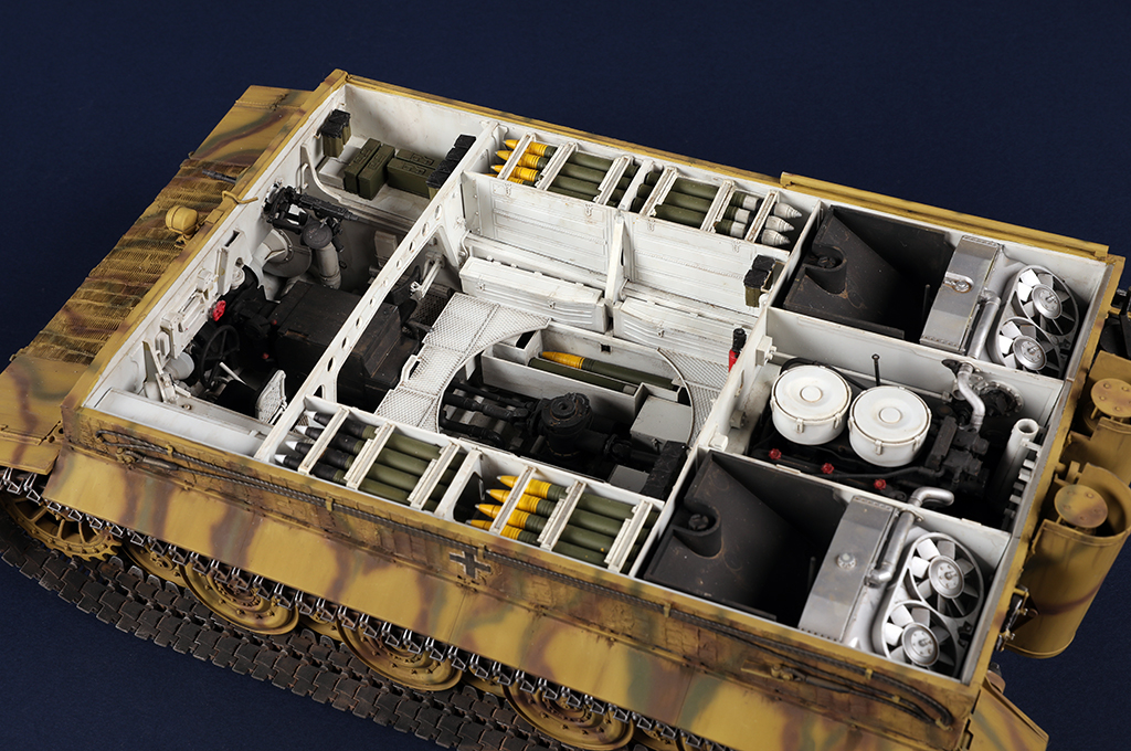 The kit consists of over 1500 parts >the kit w/refined detail >multi-slide moulded lower hull and upper hull >Full interior details >individual tracks links >Photo-etched parts included >includes tools for zimmerit coat |