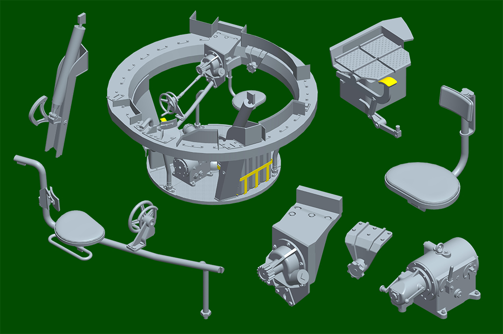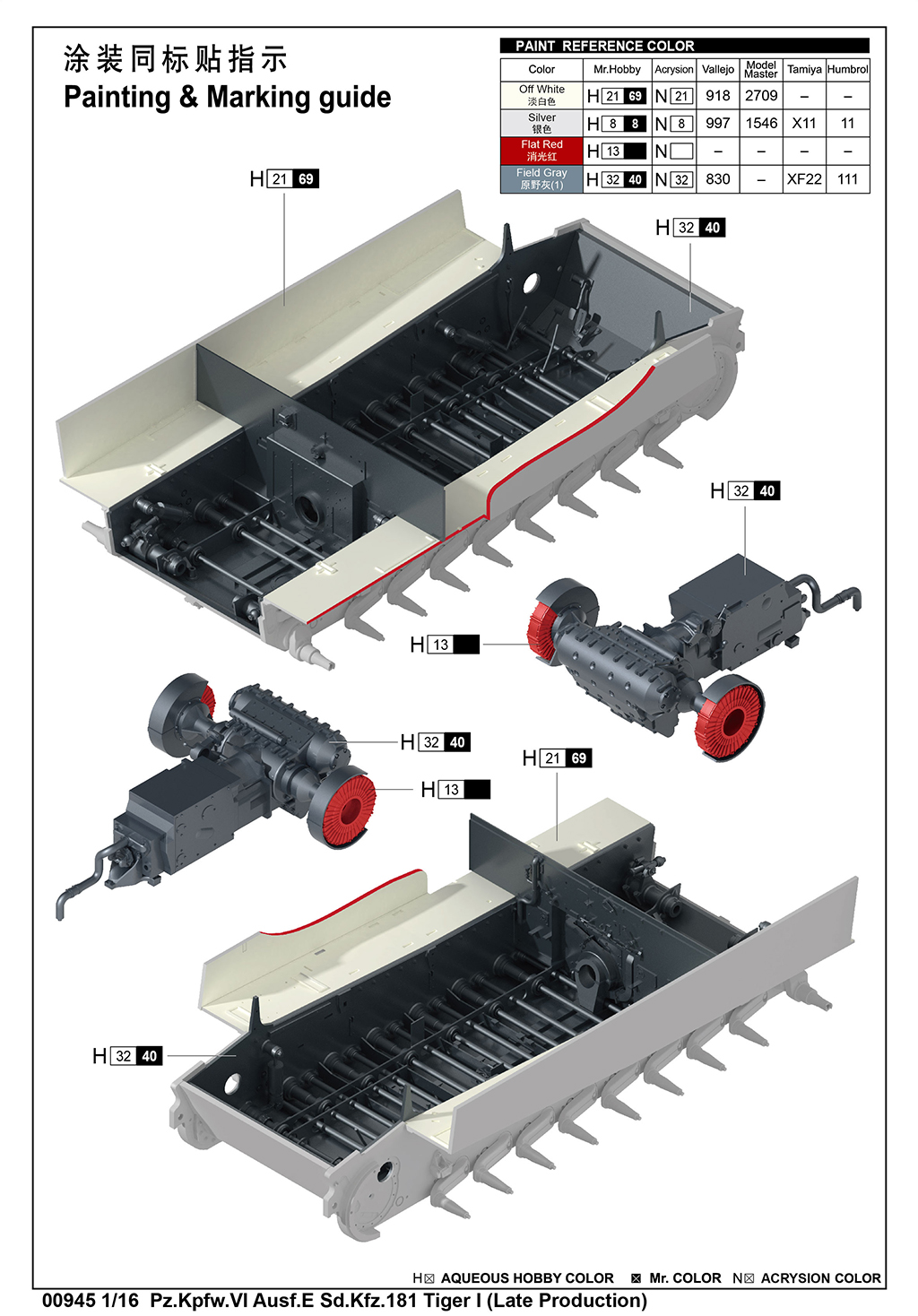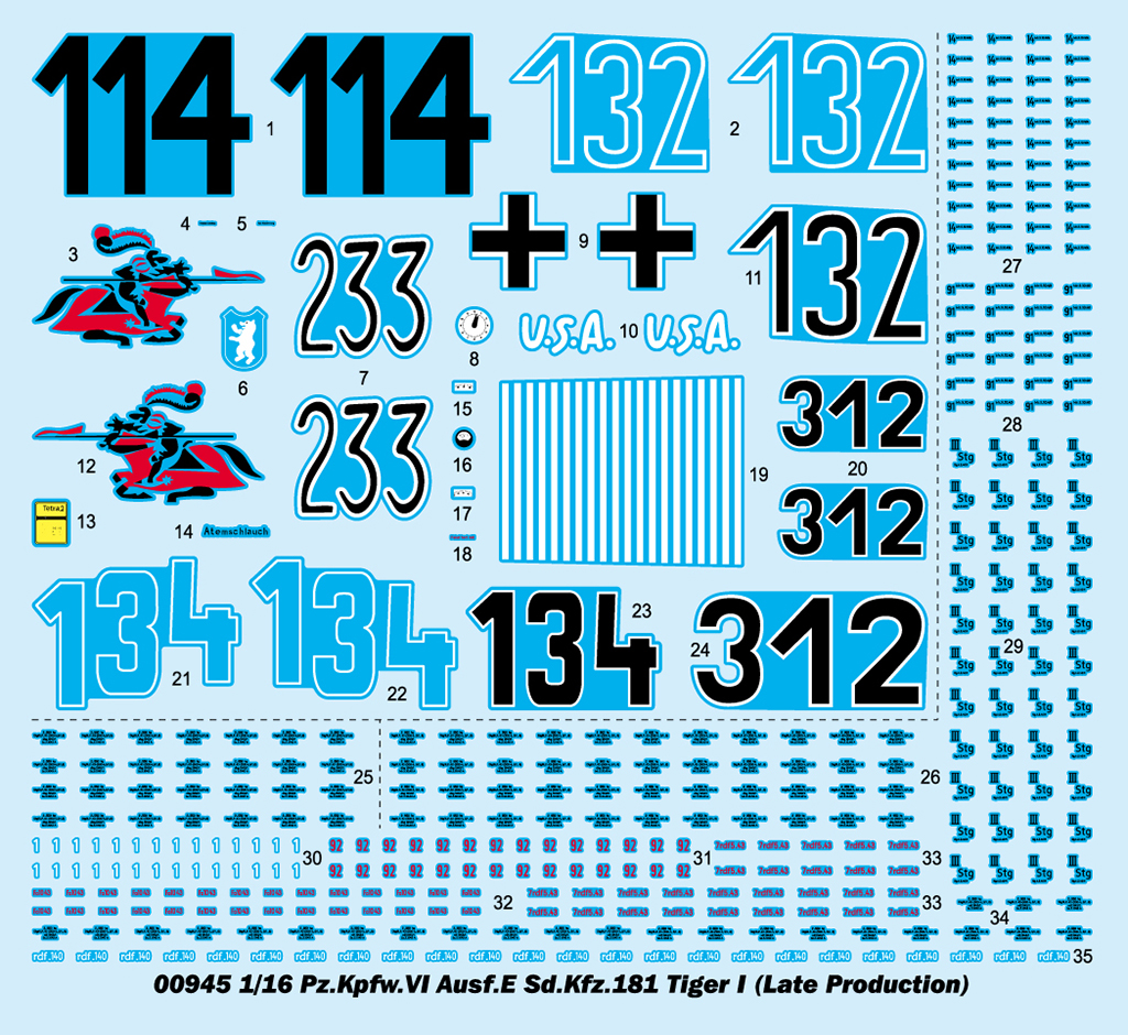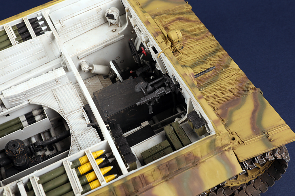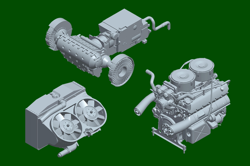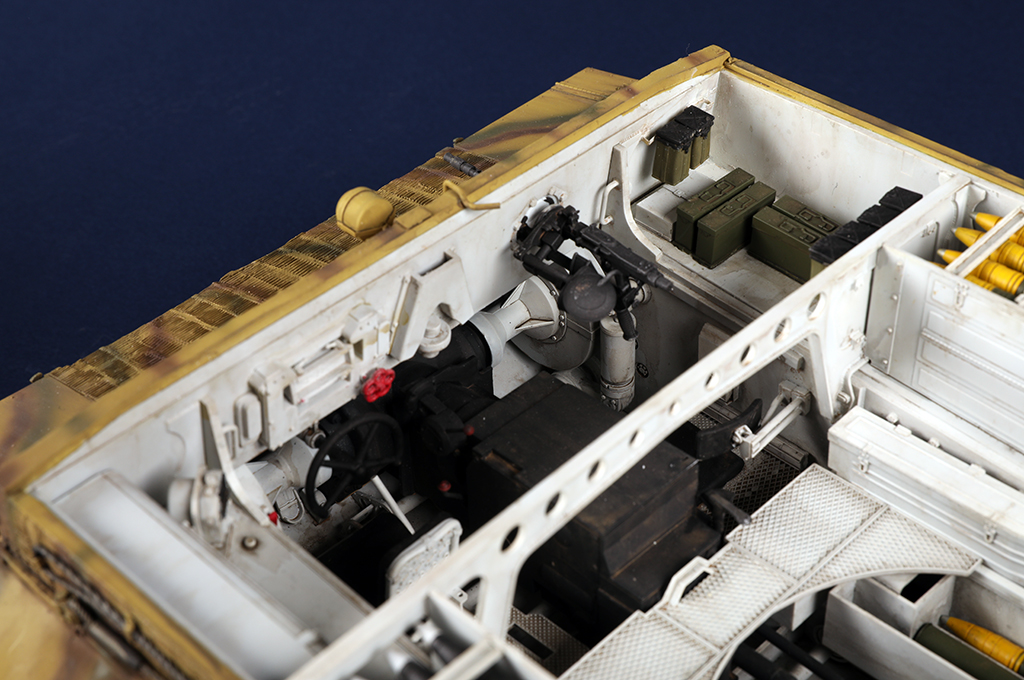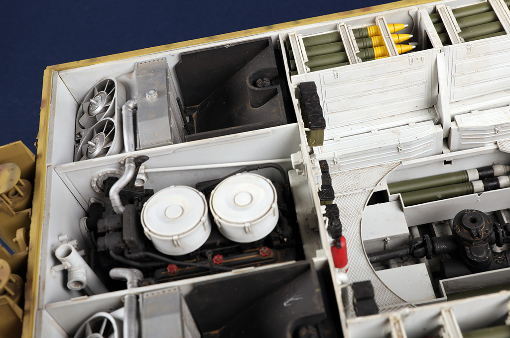 The kit consists of over 1500 parts >the kit w/refined detail >multi-slide moulded lower hull and upper hull >Full interior details >individual tracks links >Photo-etched parts included >includes tools for zimmerit coat |