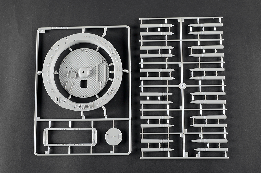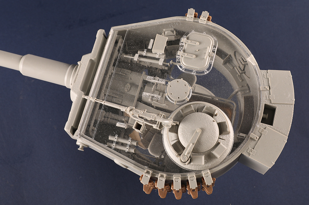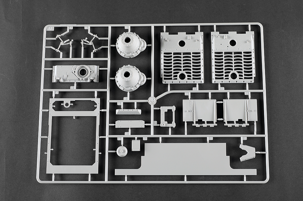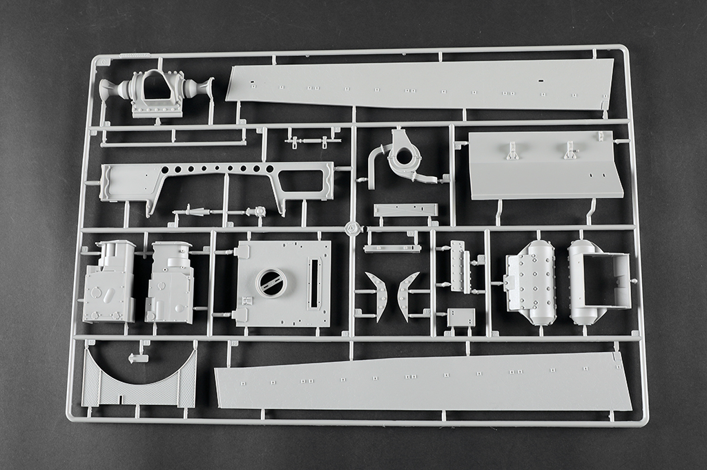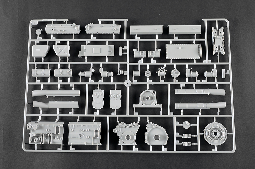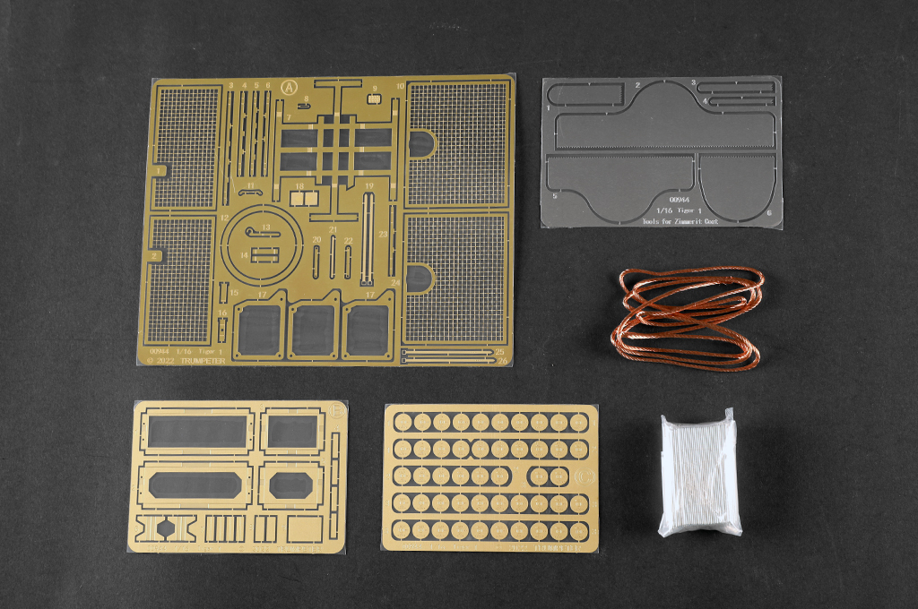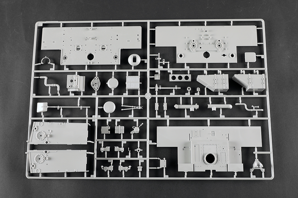 The kit consists of over 1600 parts >the kit w/refined detail >multi-slide moulded lower hull and upper hull >Full interior details >individual tracks links >Photo-etched parts included >includes tools for zimmerit coat |