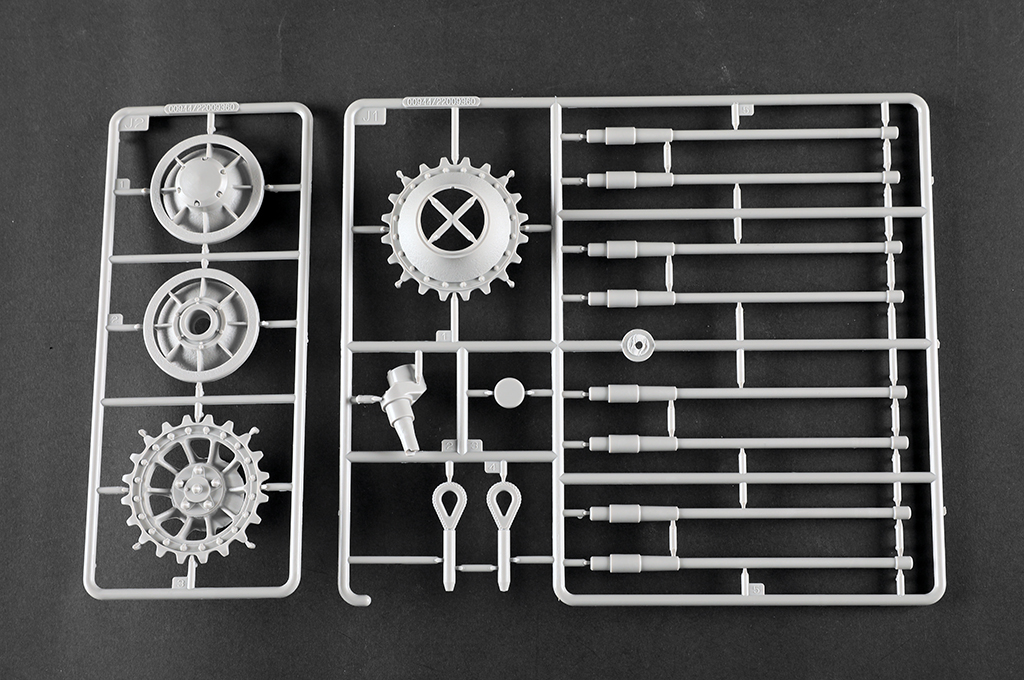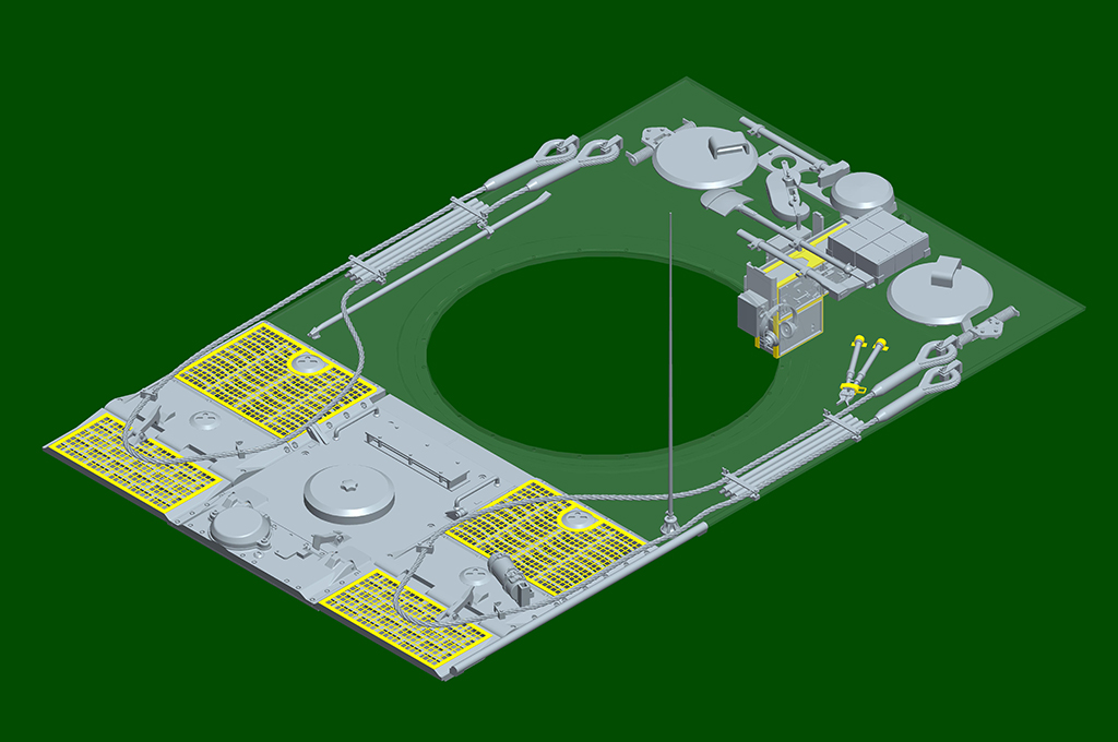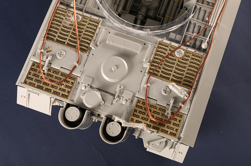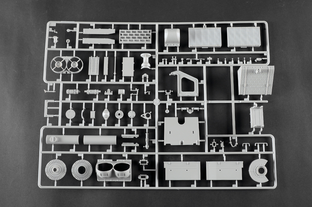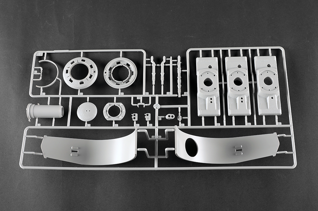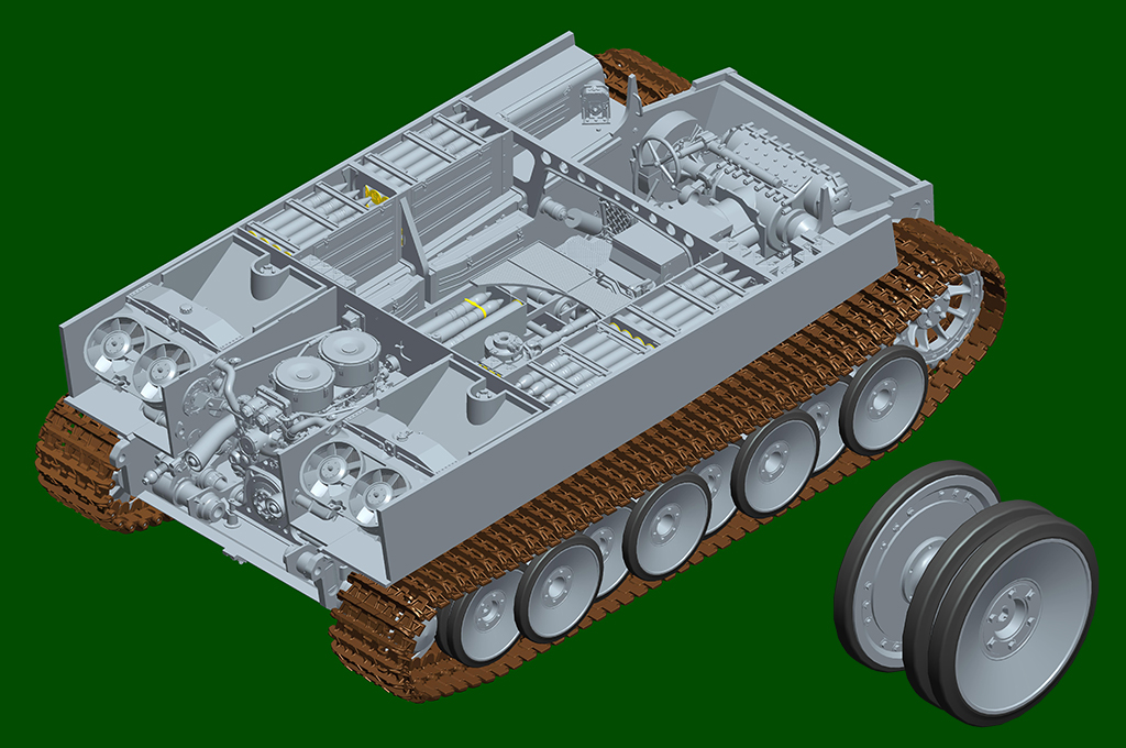 The kit consists of over 1600 parts >the kit w/refined detail >multi-slide moulded lower hull and upper hull >Full interior details >individual tracks links >Photo-etched parts included >includes tools for zimmerit coat |
