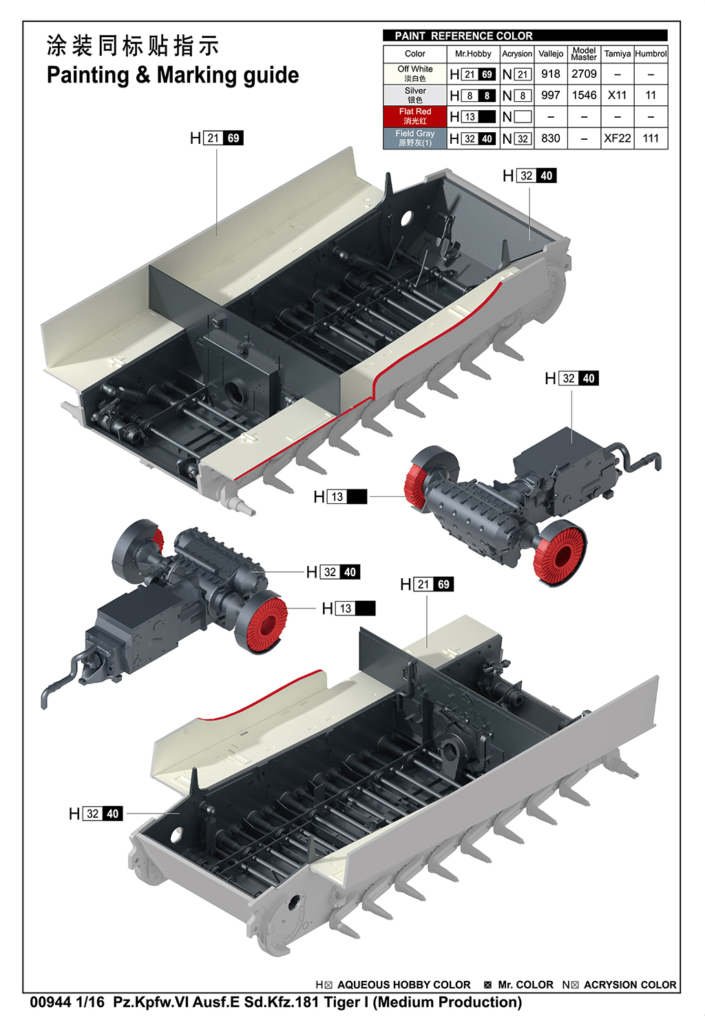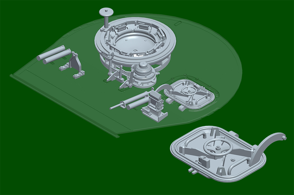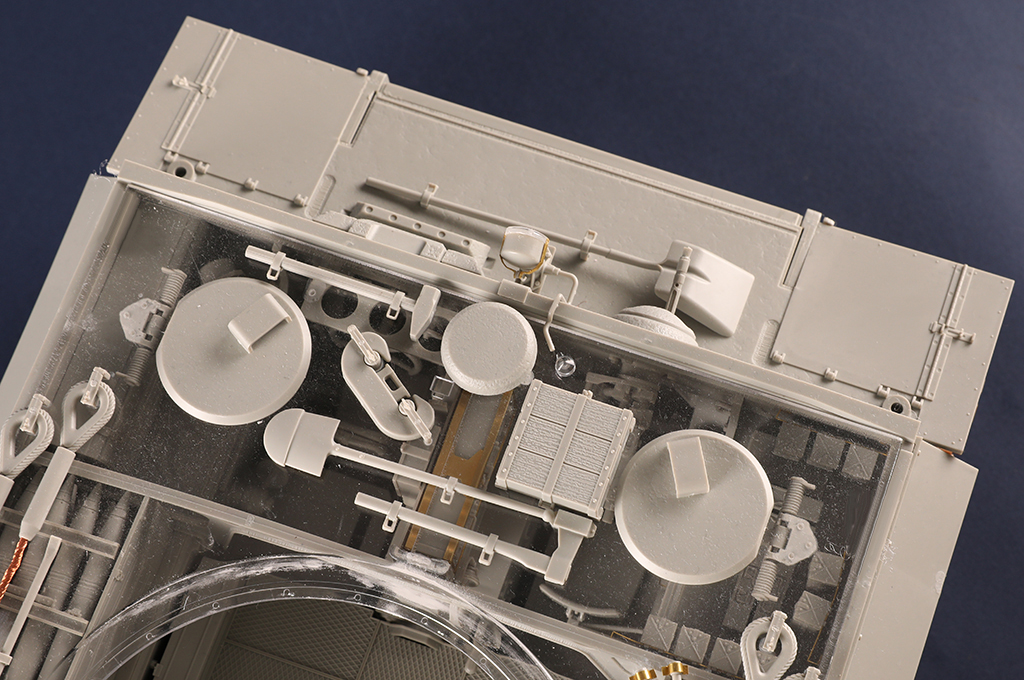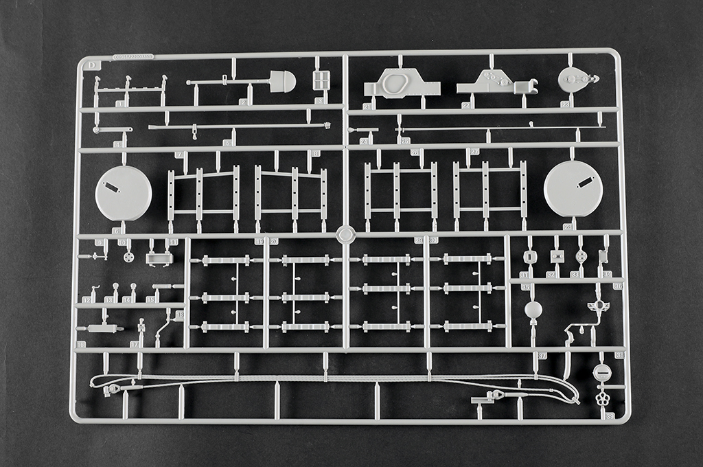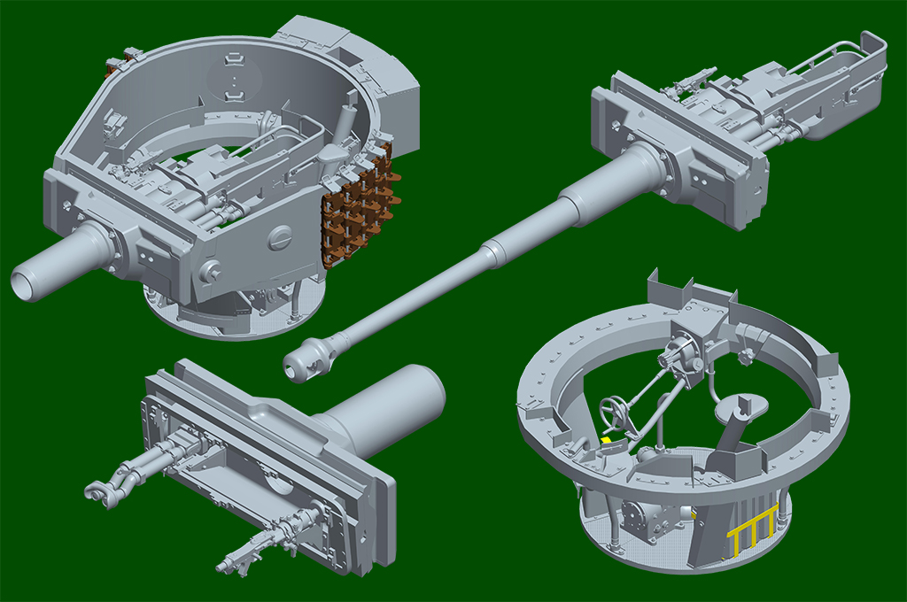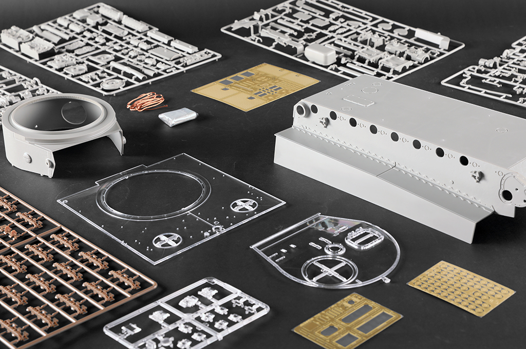 The kit consists of over 1600 parts >the kit w/refined detail >multi-slide moulded lower hull and upper hull >Full interior details >individual tracks links >Photo-etched parts included >includes tools for zimmerit coat |