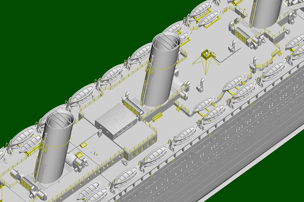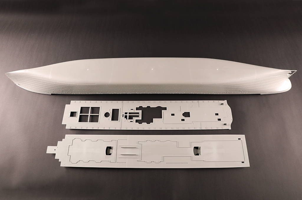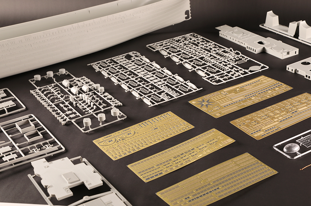 two-directional slide molds - Deck pattern finely rendered. - 8 pieces of photo etched frets for handrais,ladders etc. - stand included |