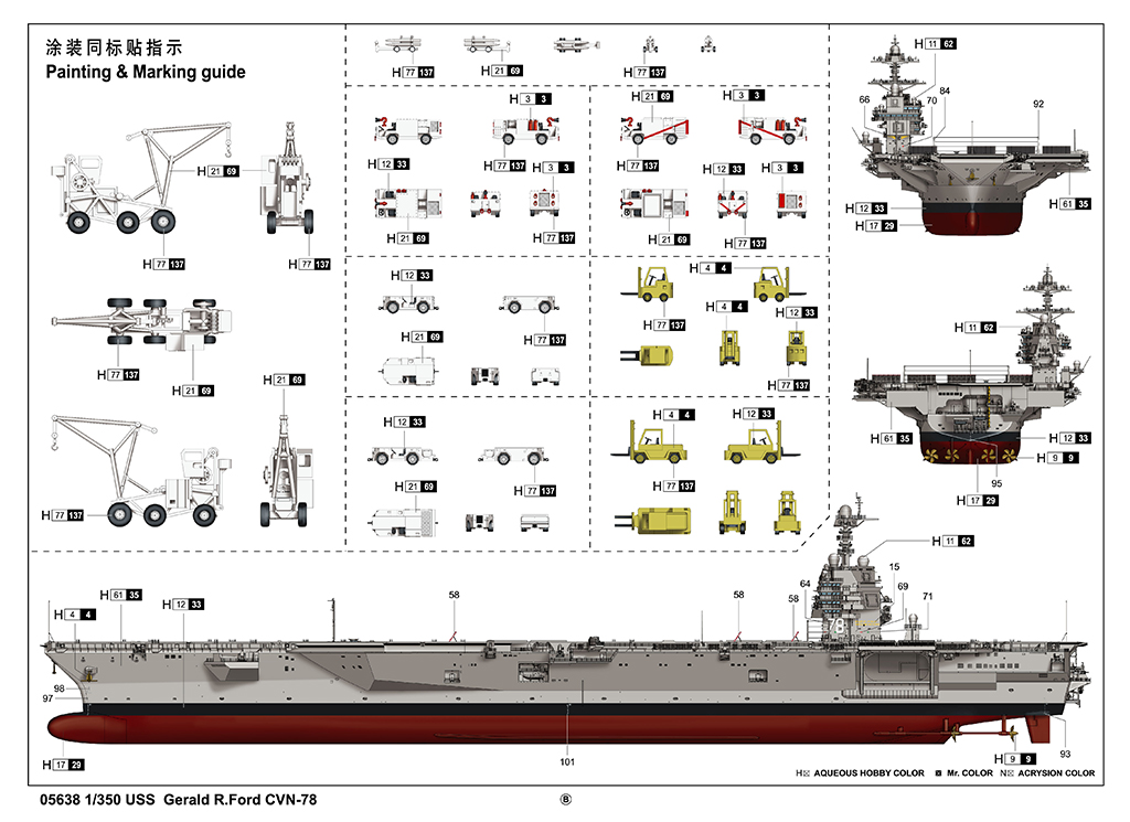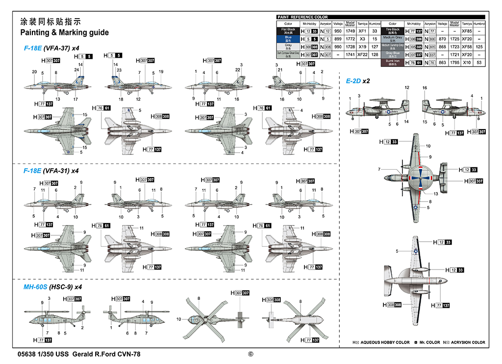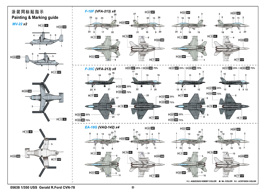 - Detailed Hull is a one piece part - Detailed decks -Extensive photo-etched details included -Aircraft Wing includes: F-35C,EA-18G,MH-60S, MV-22,F-18F, E-2C -Complete ship and aircraft decal sets |