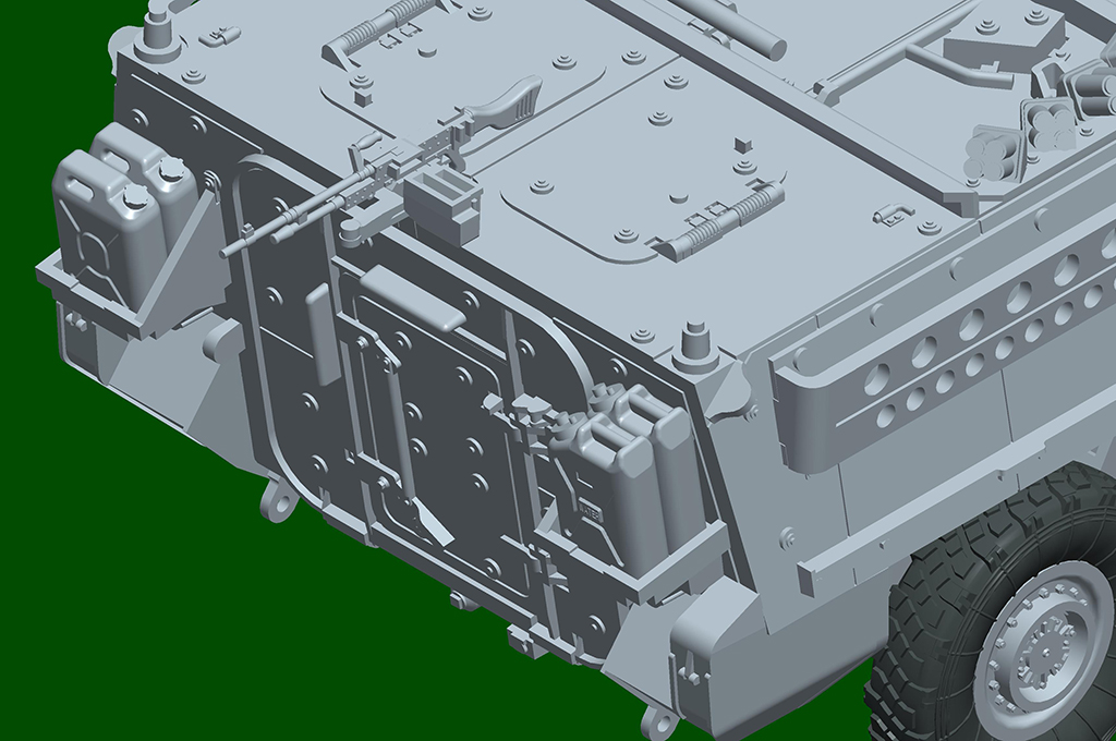 M1127“斯崔克”偵察車(RV)為偵查分隊(duì)的偵察和監(jiān)視作業(yè)提供了一個(gè)有效的平臺(tái)。該車可以搭載六人的偵察班組和附加的人員,總共可以攜載七人。