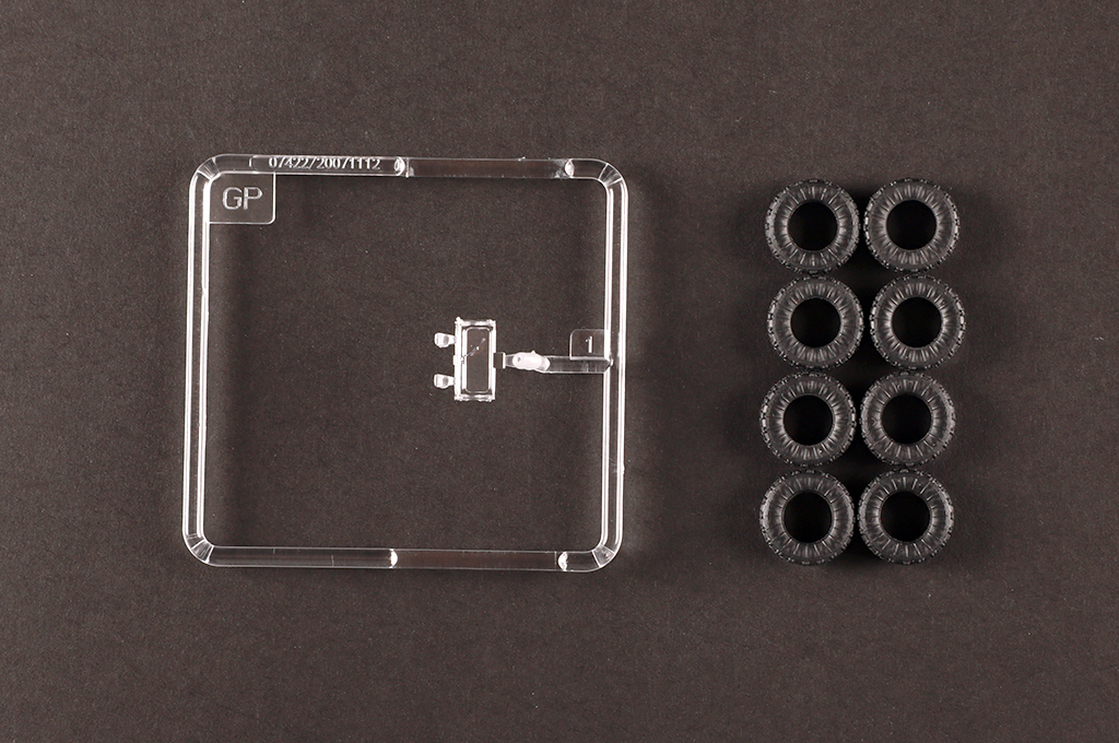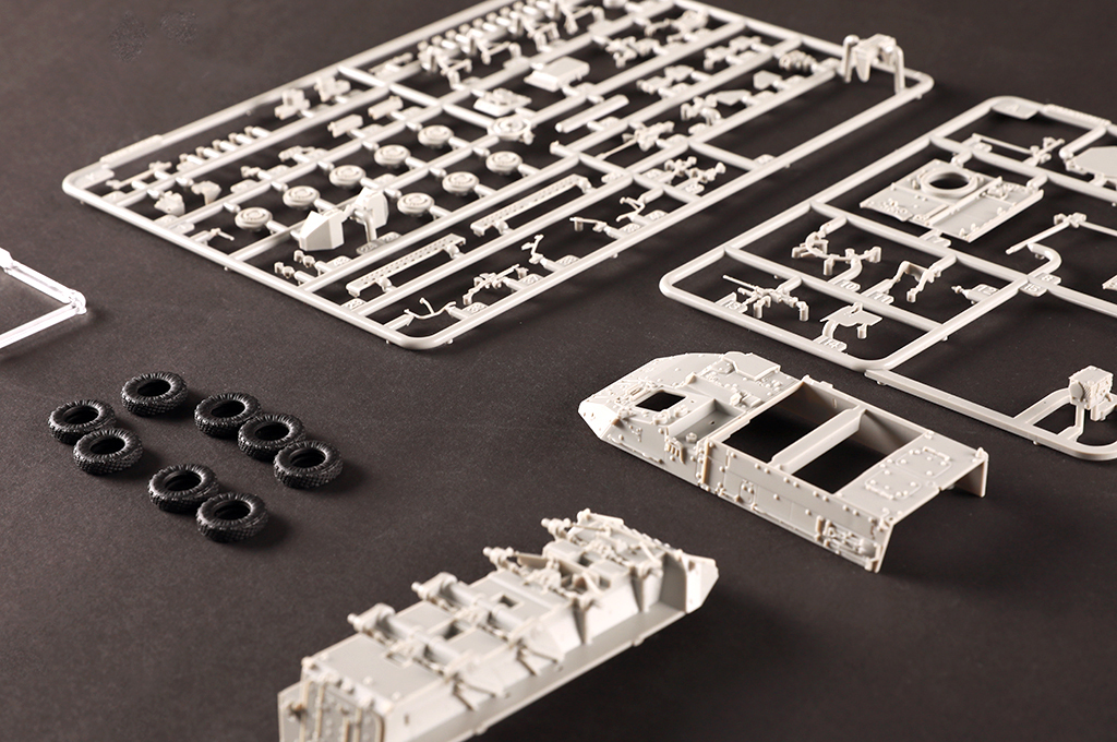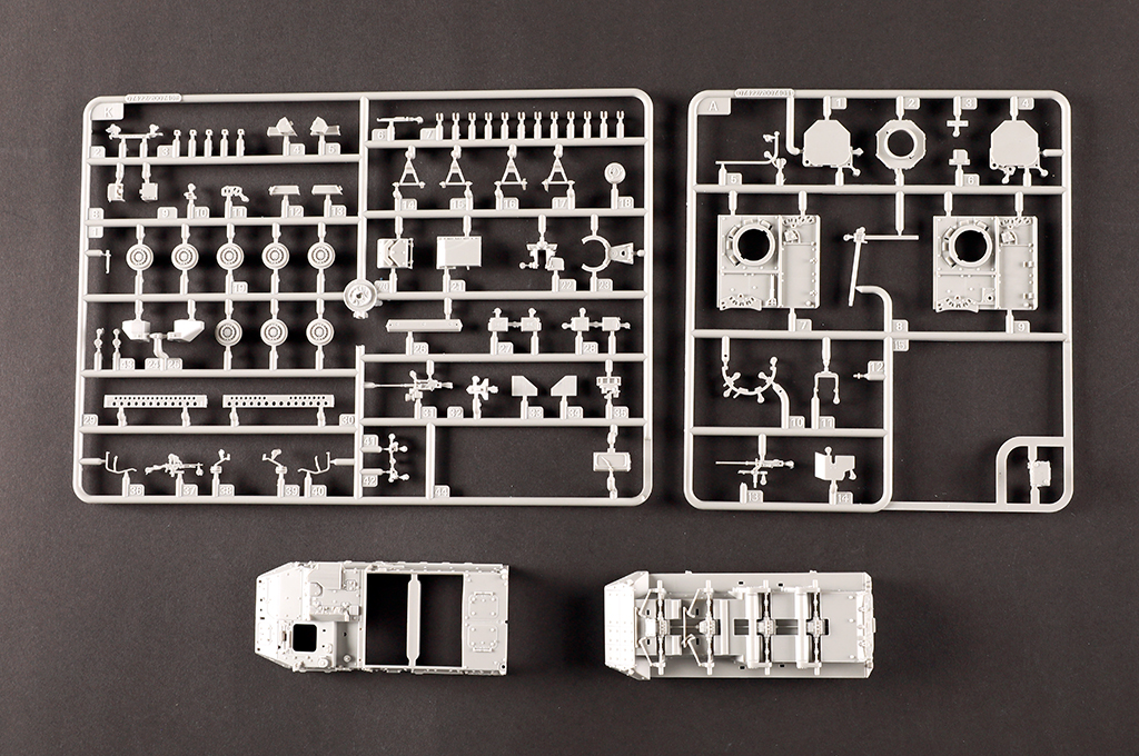 3 sprue ,upper hull , lower hull and tires