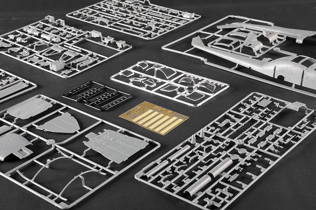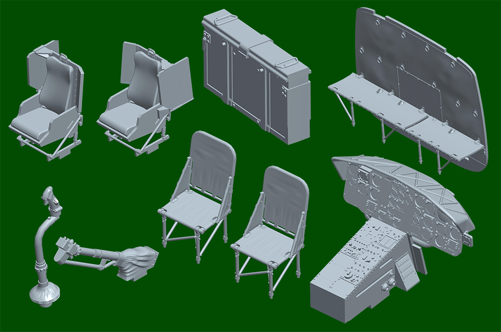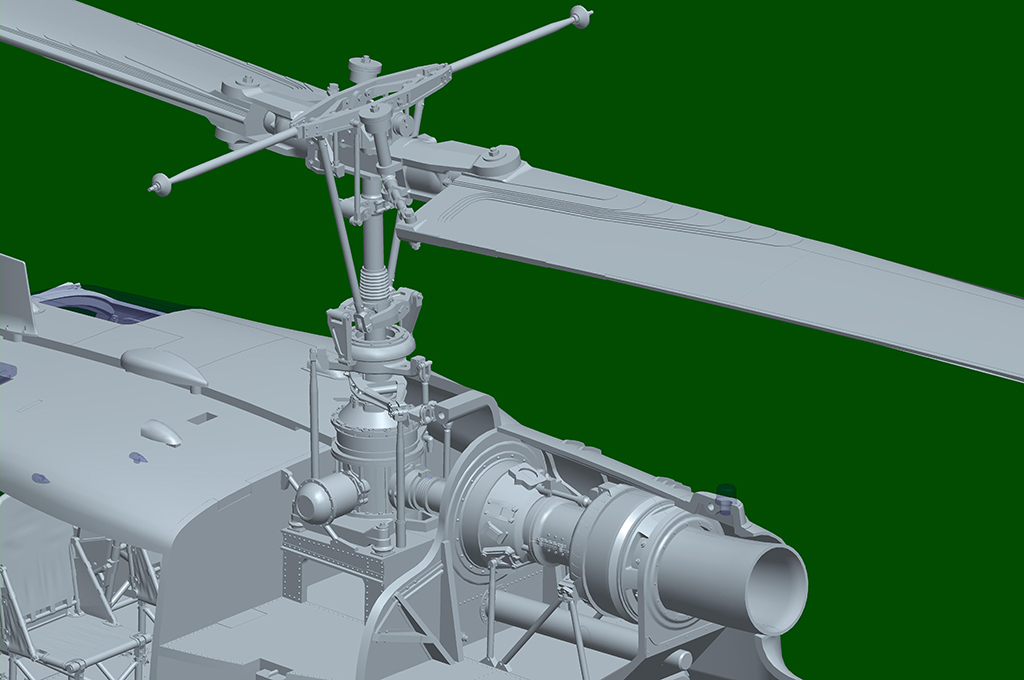 -fuselage moulded w/ authentic details -Finely detailed cockpit -Finely detailed rotors -Photo-etched parts included |