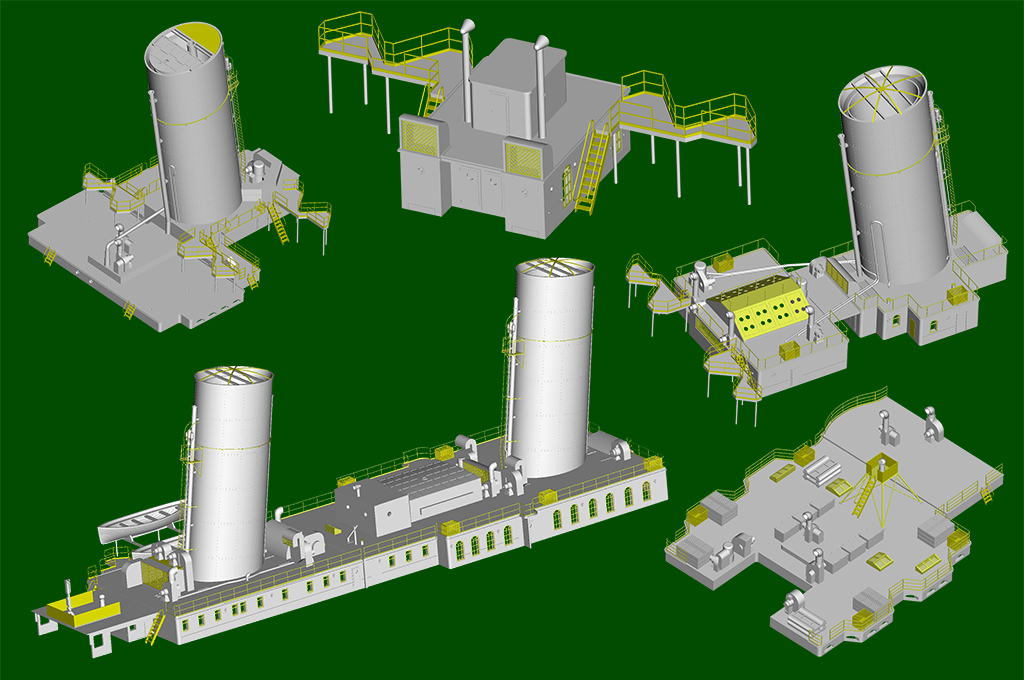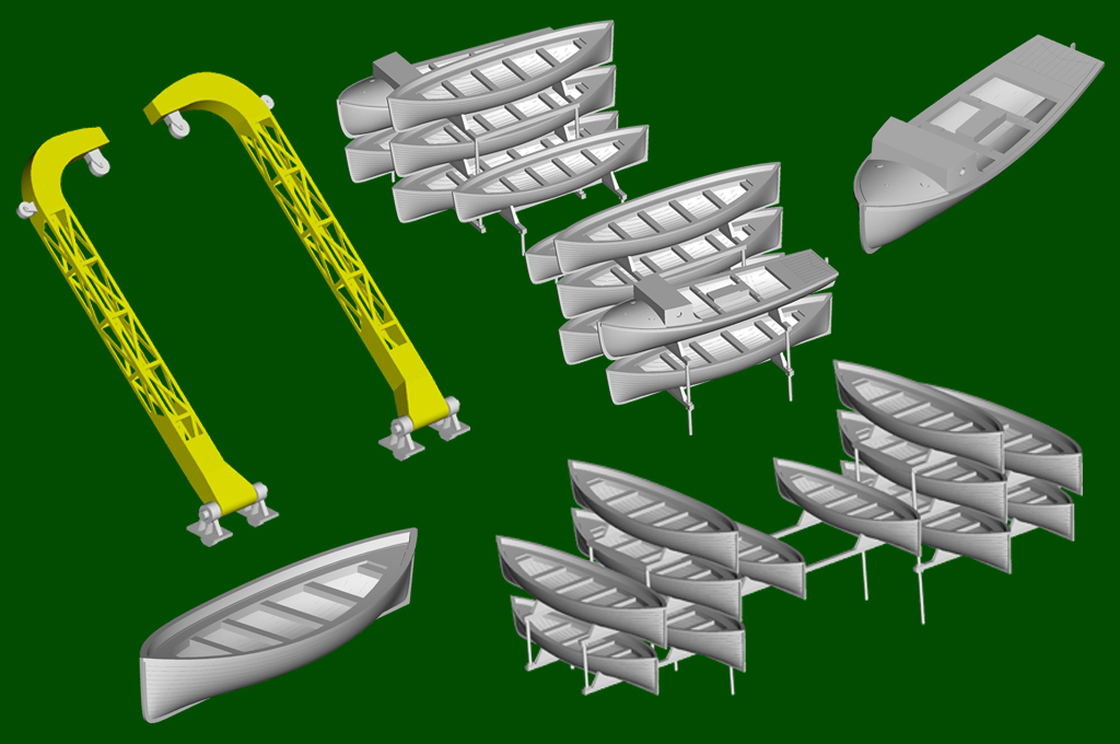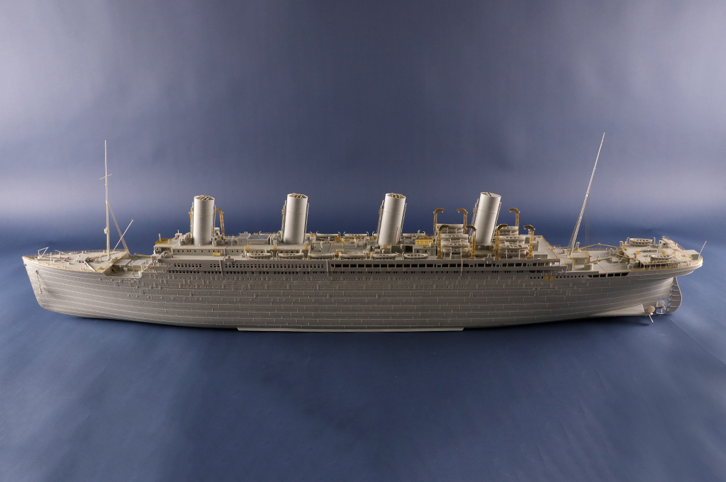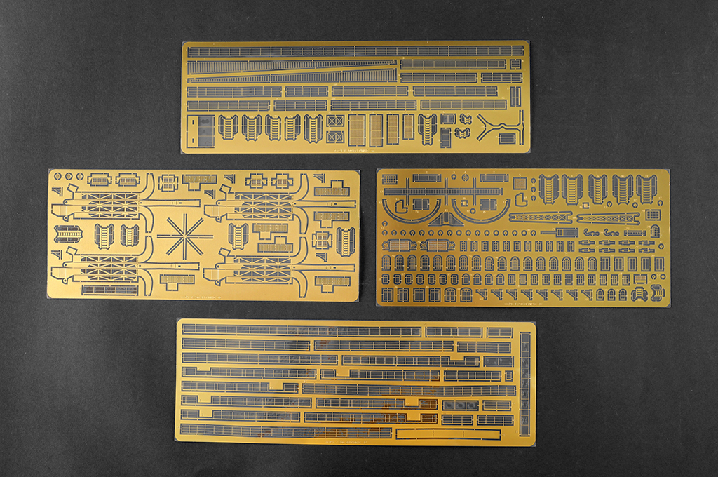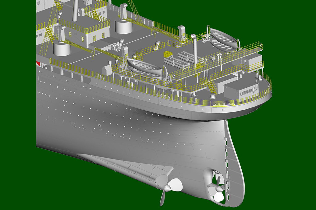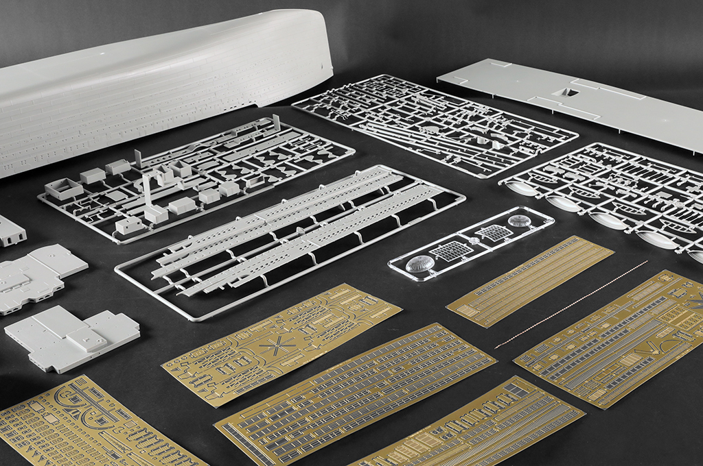 - One-piece hull made from two-directional slide molds - Deck pattern finely rendered. - 11 pieces of photo etched frets for handrais,ladders etc. - stand included |